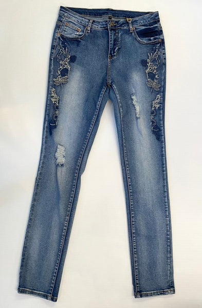 Flower/Dragonfly detailing skinny jean