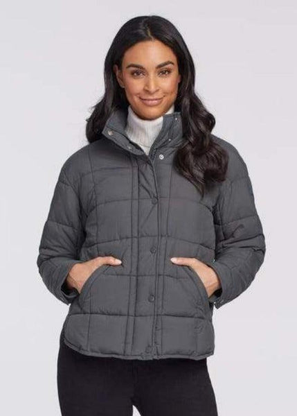 Brave chilly days with style and confidence in our sophisticated button-up jacket, featuring a cozy and stylish quilted design. Featuring timeless details such as a classic collared neckline, laid-back drop-shoulder sleeves, and practical patch pockets on the chest, along with convenient welt pockets at the sides, it effortlessly combines functionality with fashion. With a flattering 39" length, it's the perfect outerwear piece to elevate your cold-weather wardrobe.