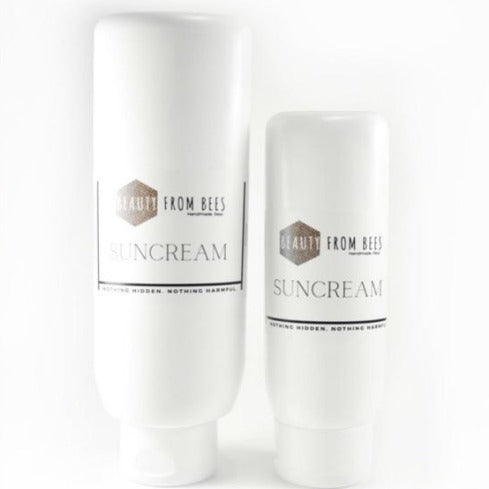 Beauty From Bees Sunscreen. Enjoy the outdoors with this light-weight, non-greasy sun cream. Safe for all ages, including babies. Suitable for the body, face and all skin types. Feel good knowing this cream is safe for the skin containing non-nano Zinc Oxide. This formula is very slightly scented and mild enough for anyone with sensitive skin. It is also pH balanced and easy to apply.