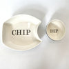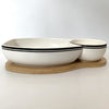 Oval Shaped Blue and White Striped dish with a spout shape at the end