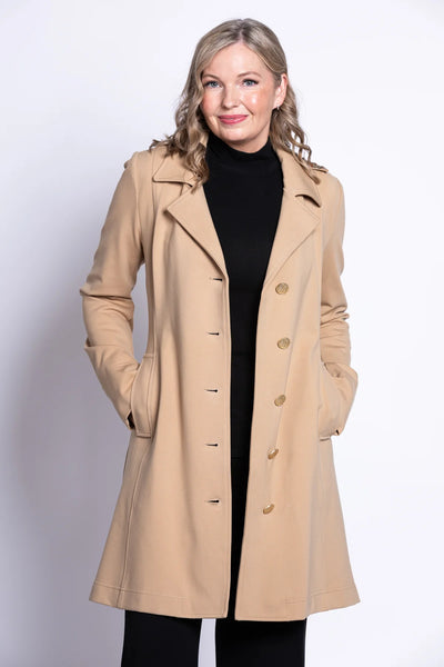 The Tracy Coat will take you from errands to dinner out. The Princess seams enhance your shape while the soft cotton fabric keeps you cozy and comfortable. It is fully lined, features pockets and a 2-way zipper.