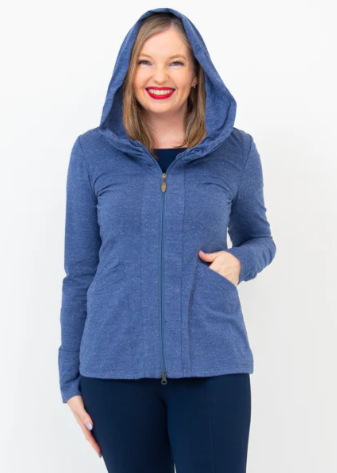 Our version of a more polished, zip-up hoodie. Bamboo fabric ensures all over stretch, while still providing shape. The cowl neckline of the Seymour frames the face, while the back hood can be displayed or incorporated into the cowl. Tapering from high waist to hip gives definition, as do longer, slightly fitted sleeves. The Seymour brings a sleeker, slimmer look to active wear. Wear it for street and work style, with a touch of elegance. Slip on as a cool-weather top, or wear unzipped as a light jacket.