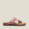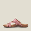 This truly is the Perfect sandal for any time any where! Premium leather toe loop thong sandal with strappy upper design and adjustable hook and loop strap closure. Lightweight cork-latex midsoles are topped with soft padding and lined in luxurious suede, offering exceptional arch and metatarsal support. Outsoles are flexible, durable rubber.