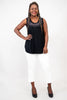 One side is a v-neck and the other a flattering scoop neck, flip the tank around for whatever cut your feeling!