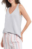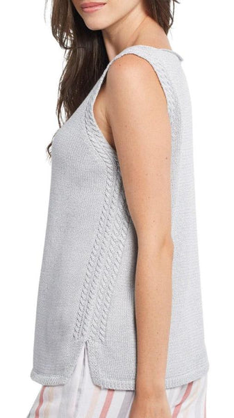 This sweater knit cami can be paired with just about anything in your closet. Bra friendly and featuring a slight v-neck, it has side vents and is made using a luxe shiny yarn. Wear it under your favourite blazer or all on it's own with jeans or dress pants