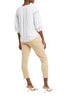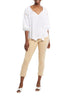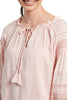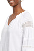 If we're talking about flowy feminine blouses, this pretty top is the centre of conversation! We can't get enough of the stylish design details—the swiss dot textured fabric sets the stage for a split neckline with a delicate tie, 3/4 length raglan sleeves, a curved hem, and gathering around the neck opening, all while the decorative crochet sleeve inserts add a romantic vibe that will instantly elevate any outfit this season.