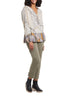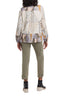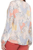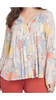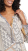 This stitched and stylish fabulous blouse is flowy and flattering for all figures. It features 3/4 elasticized sleeves, decorative ladder-stitching at the sleeves and bust, and a printed stretch challis material