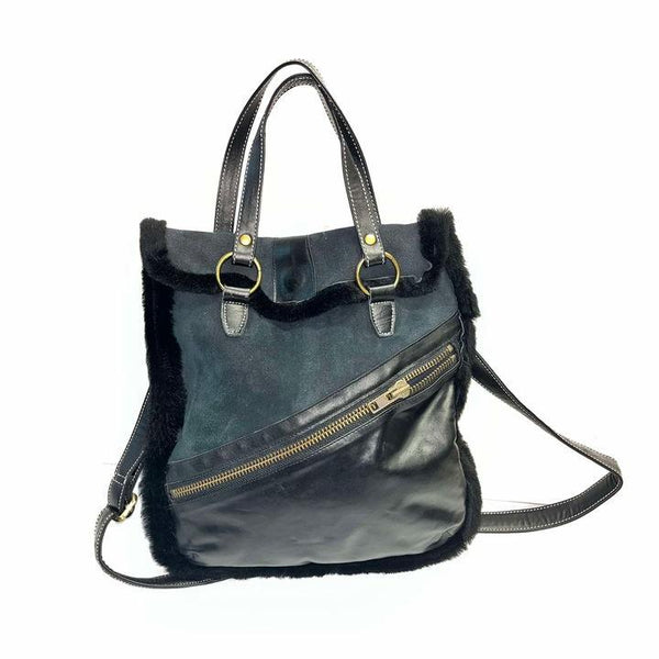 Purse - Fur Leather dark blue Bag