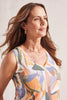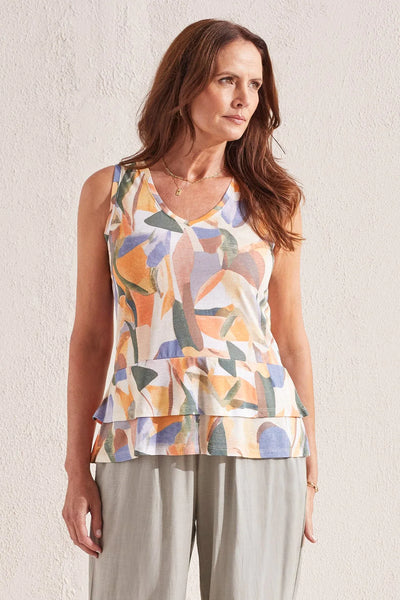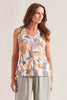 Bring fresh flair to your everyday look with this knitted sleeveless top featuring a lively print and an eye-catching double-peplum design. Linen-blend fabric combined with a self-cleaning v-neckline make this top an easy win.