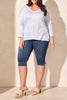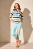 The Combo Print 3/4 Sleeve V-Nk Crew Neck Top features a classic V-neck and 3/4 length sleeves, providing a timeless style for your wardrobe. The knit material ensures comfort and durability, making it a versatile option for any occasion. Available in the stylish color of Sailboat, this top is perfect for adding a pop of color to your spring wardrobe in 2025.