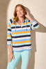 Craving coziness that won't weigh you down? This raglan hoody is ready to check all your boxes with an airy notch neckline, three-quarter sleeves, flattering shirttail hem, and fabric patterned with colorful stripes.