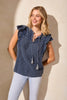 Swiss Dot Tassel-Tie Vintage Wash Popover Blouse