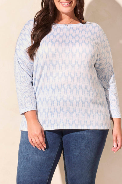 Combo Print 3/4 Sleeve V-Nk Crew Neck Top