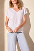 Elevate your everyday style with this relaxed tee, designed in puckered knit fabric for a rich, textured look. The v-neckline and center seam with cover-stitch detailing add a touch of structure, while cap sleeves and extended shoulders keep it cool and comfortably laid-back.