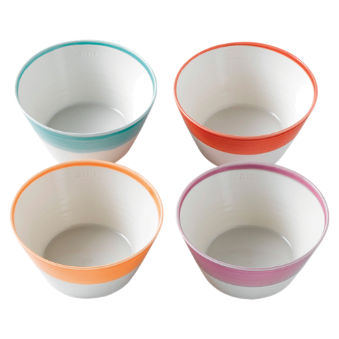 Brighten up your morning with these 1815 Bright colors Cereal Bowls, coming as a set of four. Made from chip-resistant porcelain, each one features a different bright colored glazed around the rim of the bowl. With the shape and design inspired by our famous ceramic heritage dating back to 1815, the colors contrast beautifully against the white to give them a stylish modern twist. Use for cereal, fruit, yogurt or soup. Shake up your current dining set with these colorful bowls.
