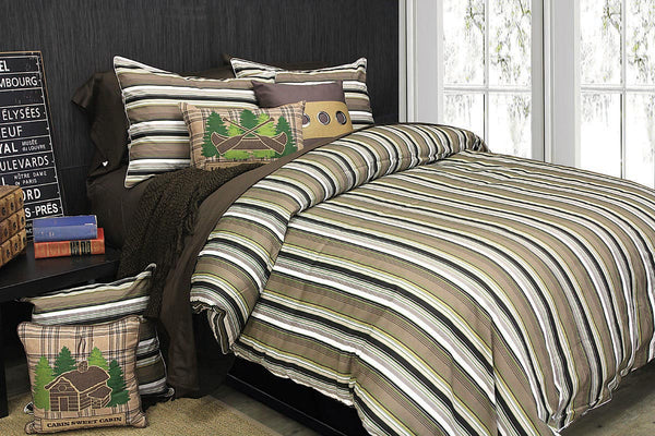 Cameron’s stripes in rich kernel, acorn, mushroom, cloud and parsley lend it the ultimate urban feel! Cameron is the perfect fit for any bedroom.