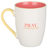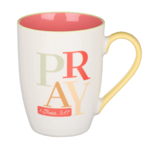 Let the Pray Continually Orange Ceramic Mug be your daily reminder to spend more time in prayer. The creamy white exterior of the ceramic coffee mug is decorated with an abstract design featuring large gray, orange, brown, and yellow letters.