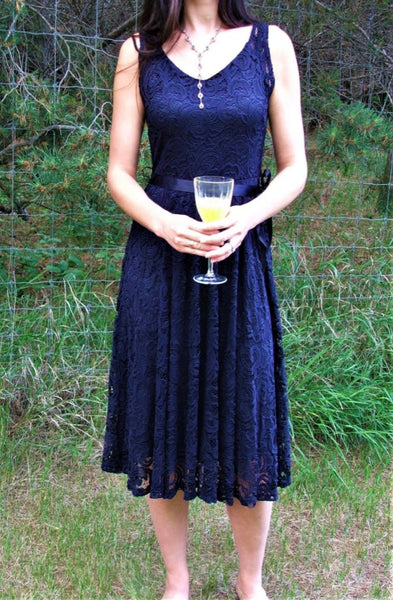 Papillon Navy Lace Dress with a front tie detail
