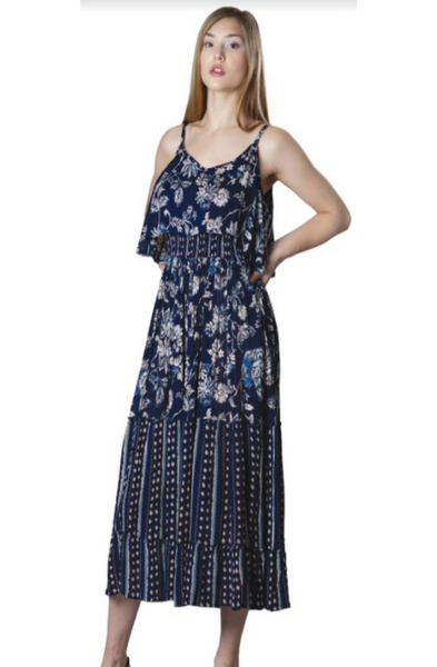 Papa Fashions Dress - Floral Blue HighLow