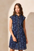 Embrace casual charm with this sleeveless shirt dress in lightweight denim, featuring a subtle all-over print for added flair. The hourglass silhouette enhances your shape and the frayed button placket adds the perfect touch of style! The sleeveless design keeps it cool for warm days, while a touch of stretch in the denim offers effortless comfort.