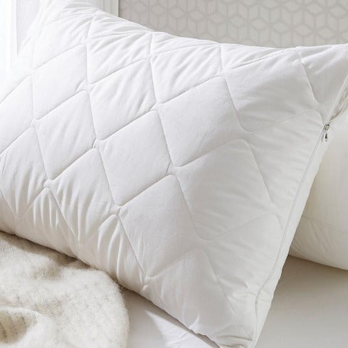 The minimum level of protection that you need for your pillows is an extra layer of fabric to protect your pillow. Daniadown offers a 2 pack of cotton pillow protectors to protect your investment.