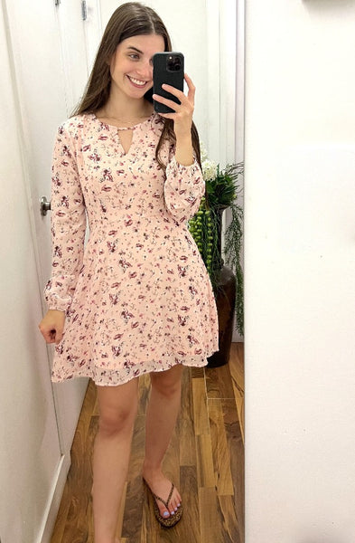 En Kay long sleeve pink floral dress