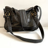 This black leather shoulder bag is from Tomken Leathers and styled in italy. Its a genuine leather bag and has man made trim. Its model no. is LSB74A.