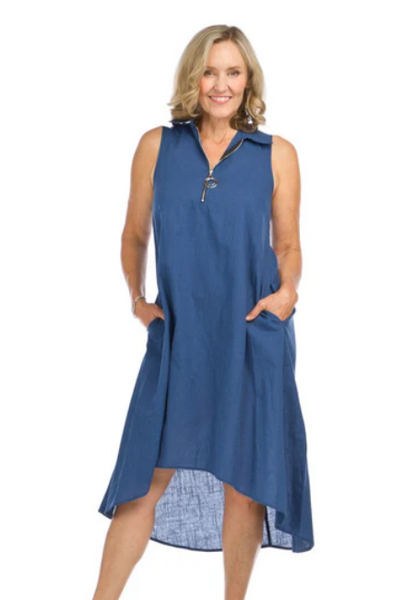 Cotton Aline Collared Dress with Zip Detail and Pockets
