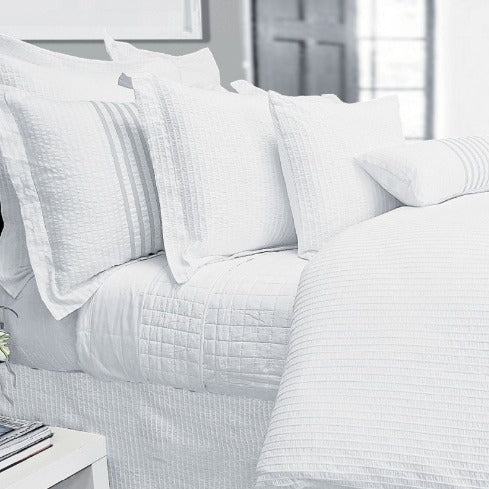 Rope and ruching add interest to this lavish looking bedding. Dorchester in a calm and inviting white makes a truly dashing display in your bedroom!