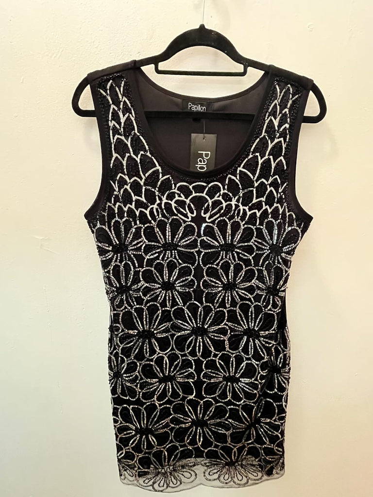 Black sequin & beads embroidery party dress