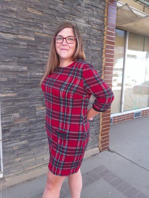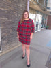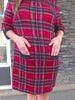 Dress - Red & Black Plaid with pocket and 3/4 sleeves