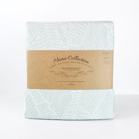 A cozy, soft, and light-weight quilt for the bed or couch. Features a reversible two-tone jacquard leaf pattern in sage and off-white, a relaxing subtle pop of colour to freshen up your bedroom. Matching Quilted Shams are available, SOLD SEPERATELY.