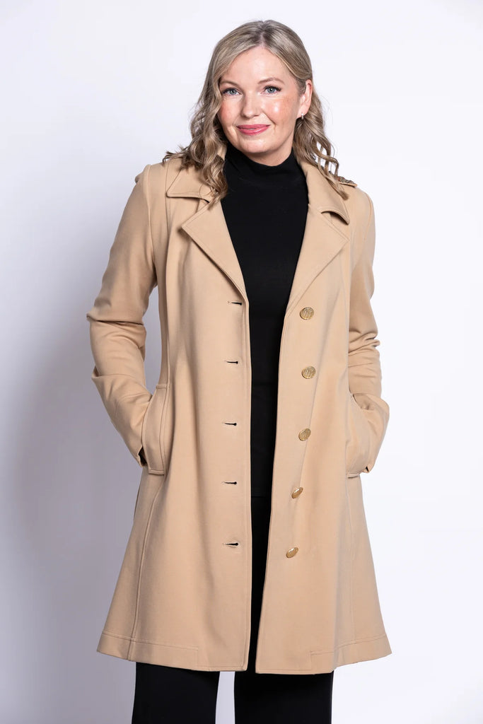 This modal trench jacket combines tailored sophistication with everyday ease. Soft and lightweight, it offers a flattering knee-length silhouette that's polished yet practical. The patterned silky lining adds a touch of luxury, while the removable hood provides versatility for any weather.
