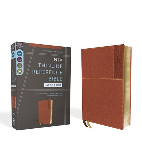 The NIV Thinline Reference Bible, Large Print captures the depth and beauty of the Bible, in a take-anywhere size. Containing a helpful center-column reference system while measuring less than an inch thick, it is the perfect resource to carry to work, travel, church, and Bible study for on-the-go access to God's Word.