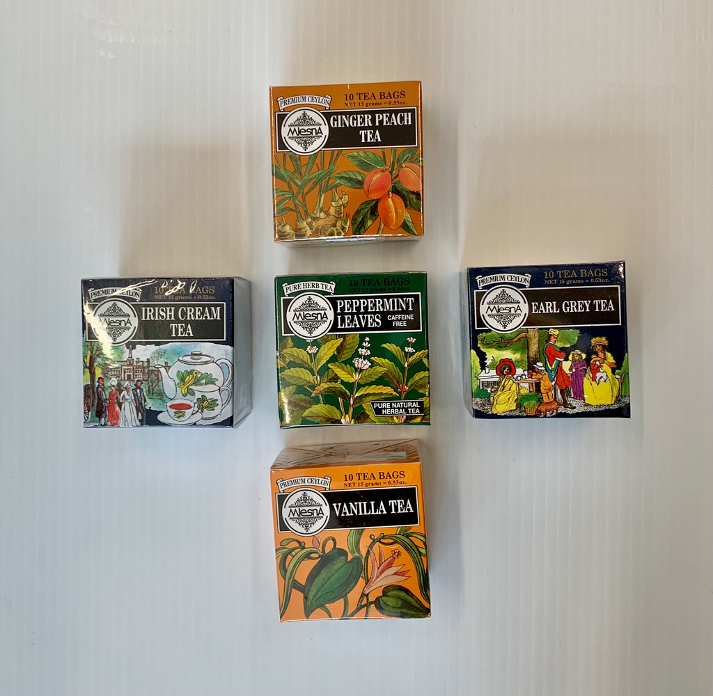 10 Tea Bag (15 g.) boxes, available in 5 assorted flavours: