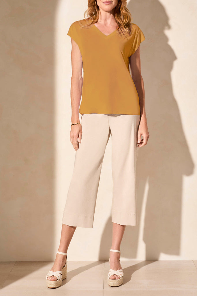 Embrace effortless style with this go-to basic top, featuring a flattering V-neckline and short cap sleeves to keep you cool on sunny days. The soft jersey material makes it a favorite pick for everyday wear.