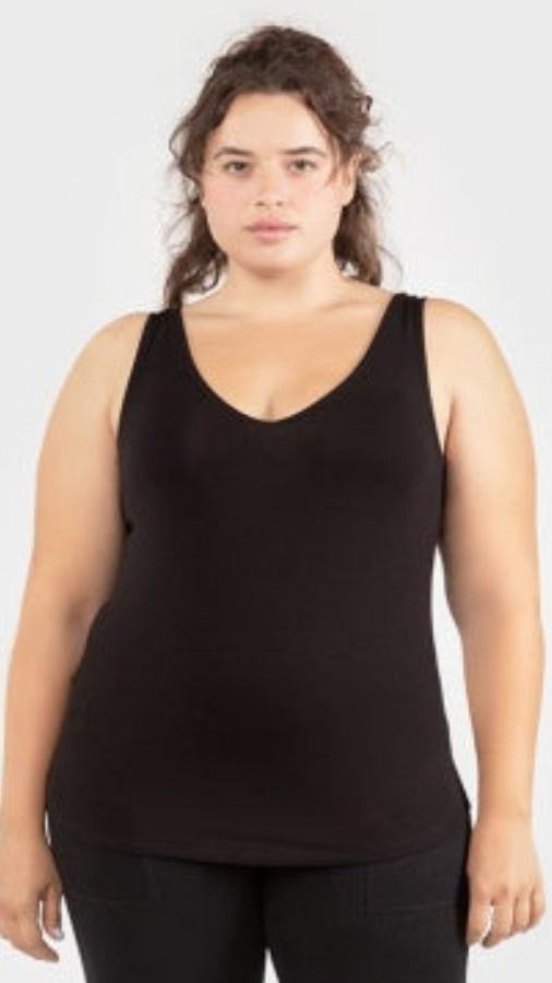 One side is a v-neck and the other a flattering scoop neck, flip the tank around for whatever cut your feeling!