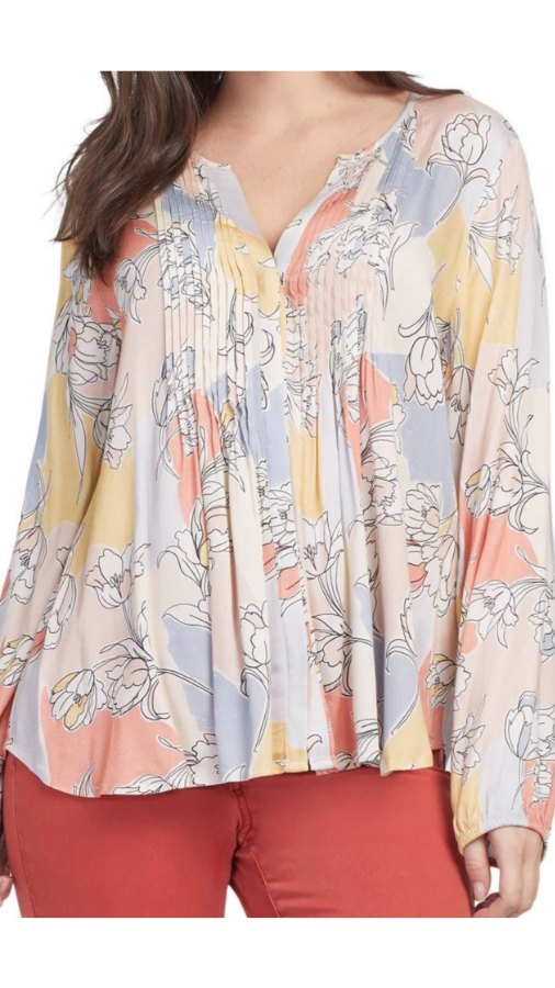 Long sleeve blouse with pleats is the perfect top for cooler Summer evenings or makes a great transition to Fall weather.